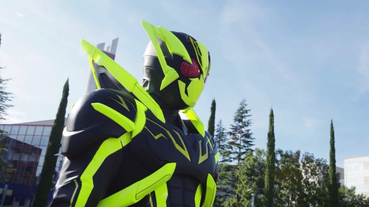 今までのバッタのような顔から一変、バッタの長い足を彷彿とさせる姿に